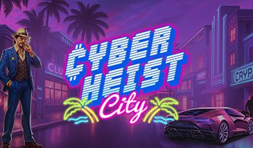 Cyberheist City leans into a neon synthwave heist aesthetic, mixing purple blue lighting, palm trees, and a crypto themed target. Its tone and structure recall Cyber Heist, while the flashy neon atmosphere draws clear parallels with Wild Neon, blending familiar energy with a sleek, casino ready presentation.